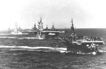 Task Force 38 lead by Admiral Halsey and Task Force 58 commanded by Spruance worked in tandem with one TF conducting operations while one TF was planning and preparing for the next operation. This also acted as a ploy to confuse the Japanese command, the TF were operating around the Philippines and later engaged the Japanese at the Battle of Leyte Gulf.