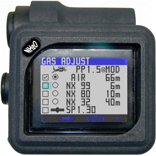 The NHeO was capable of storing and utilising four different gasses during the dive as opposed to ten gasses supported by the VR3 and VRx computer; for many divers seeking to gear up for staged decompression diving, the NHeO and later NHeO3 version is a perfect computer that may be easily upgraded in the future without requiring replacement of the whole computer.