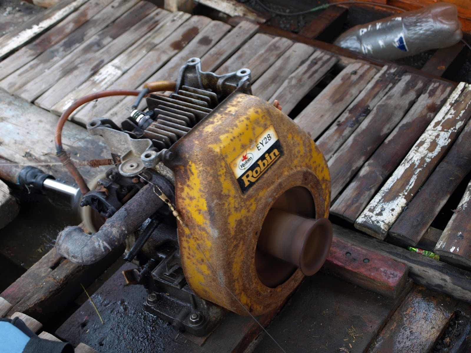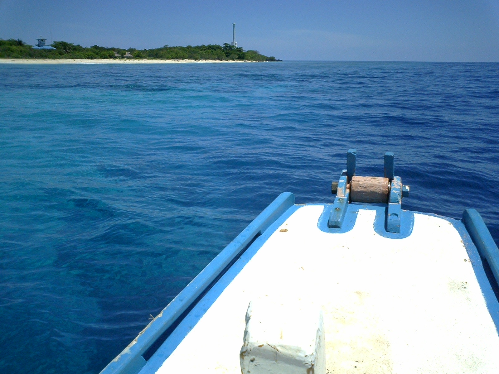 The trip across from the mainland to the island is a real clunker heading down the crowded river over the open water landing on the beach. The boat from the mainland could never be accused of being overpowered; just a single cylinder Robin engine chugging along merrily.
