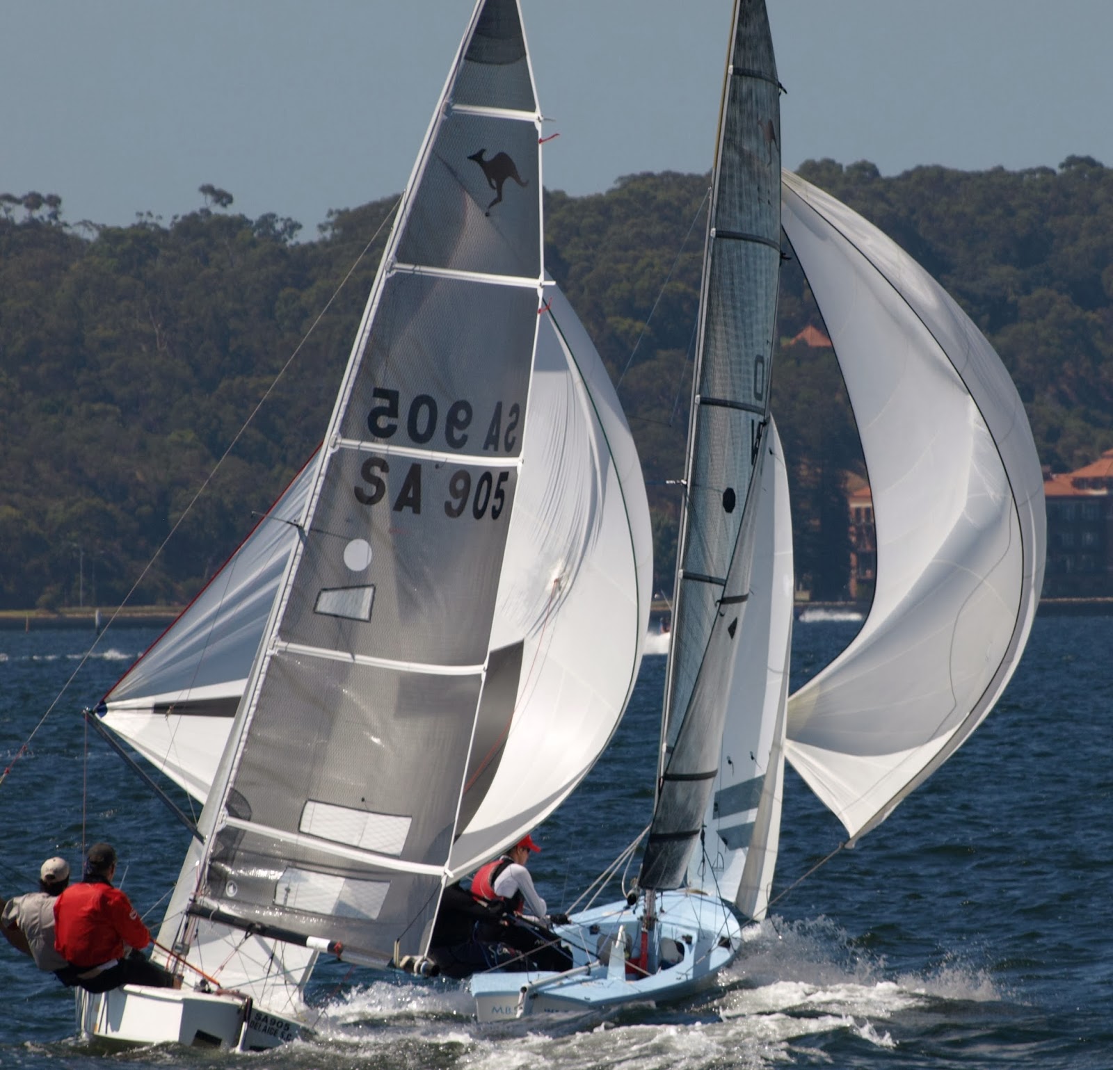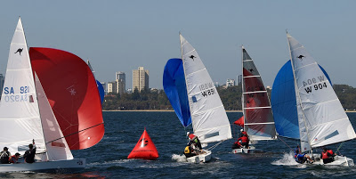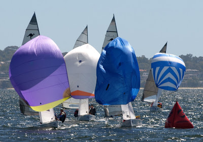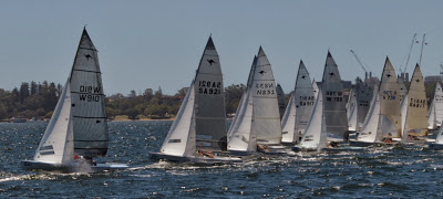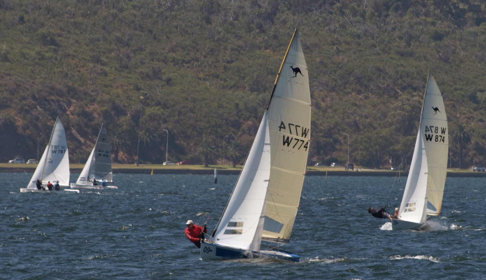 Many years back I sailed Australian Lightweight Sharpies, I still sail, but now on the bigger cruisers, you miss the thrill of the dingy though. The national championships were just held in Perth, Western Australia, held at the Mounts Bay Sailing Club, the club I sailed from in the 1980s and early 1990s. Forty two yachts lined up for the start of race one, a crowed start line saw a little action with most boats getting off to a hotly contested start, if you aren’t up there for the start – you can kiss the rest of the race goodbye.