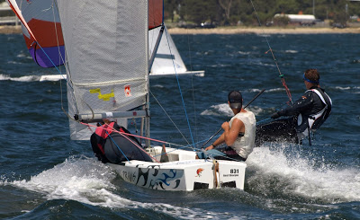 Flat and fast, there was plenty of speed upwind for those who did it right, some very fast upwind rides. The mainsail on Perth Pathology shows good shape with not too much traveler played out allowing high pointing potential.