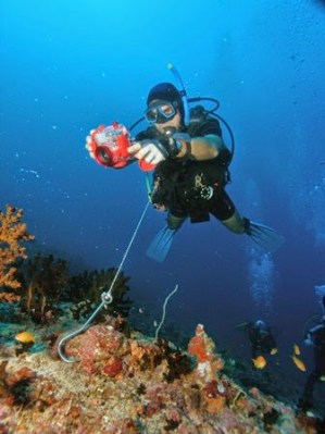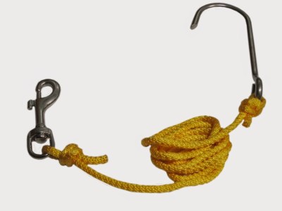 Strong currents are detrimental to novice divers and weak swimmers, it is not always possible for all dives to be drift (drift in the same direction as the current) and divers may need to either swim into the current or hold position. The reef hook is perfect for underwater photographers; unfortunately, the damage I have seen from photographers to get that perfect shot is disturbing. A home made reef hook is generally fabricated from a large fishing hook with the barb ground down and a length of line to hold onto, a loop for the hand is tied or snap clip attached. The diver secures the hook under a section of the reef and clips or holds on in the current whilst hovering above the reef causing no damage to the environment.