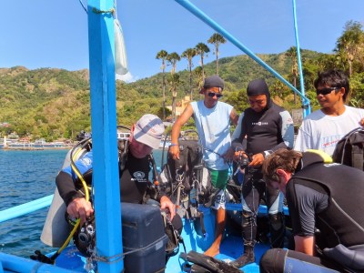 During the week, the resort was much quieter, a Chinese group kept the place busy. They had some TDI technical courses goin on, some rebreathers and sidemount set-ups, there was plenty of doubles and stage cylinders on hand too.