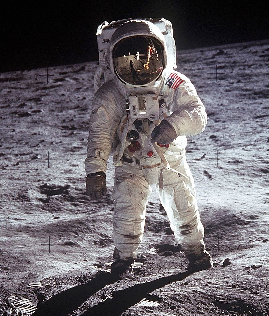 One of the most enduring photographs of the Apollo 11 moon walks was Buzz Aldrin standing on the moon’s surface with Neil Armstrong’s reflection in his visor along with the leg of the lunar module.