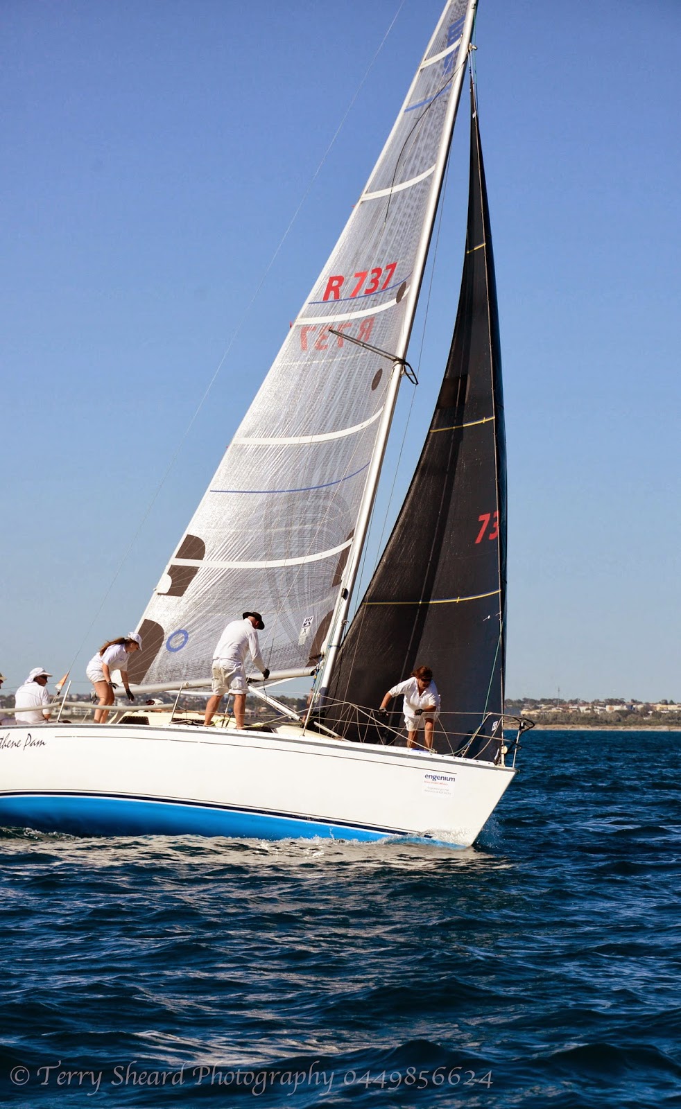 Heading past the windward mark, setting the spinnaker pole and hoisting the spinnaker is where superior crew work pays dividends. Only a couple of weeks later, our forward hand was contacted by a radio station in regards to her being the oldest forward hand competing on the Perth waterways.