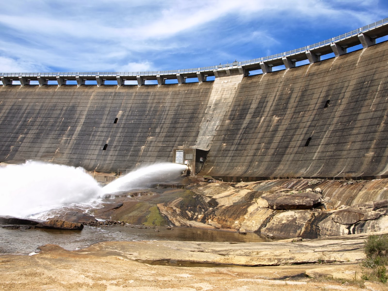 Only a small degree of overflow is occurring, this is the water exhausted through the outlet pipe at the base of the dam.