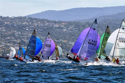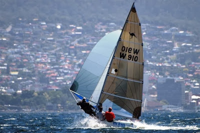 The lightweight sharpie is a controlled class performance dingy sailed by a crew of three, a forward hand is connected to the trapeze with the sheet-hand with the skipper using toe straps to increase power through leveraging weight over the side.