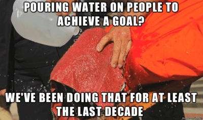 As we know, the CIA is not allowed to waterboard anymore so enter the ice bucket challenge; what a novel way of bringing alleged terrorists and their associates into mainstream society and popular culture following contemporary internet trends. I wonder if there were allowed to plank as well, or is that so 2012?