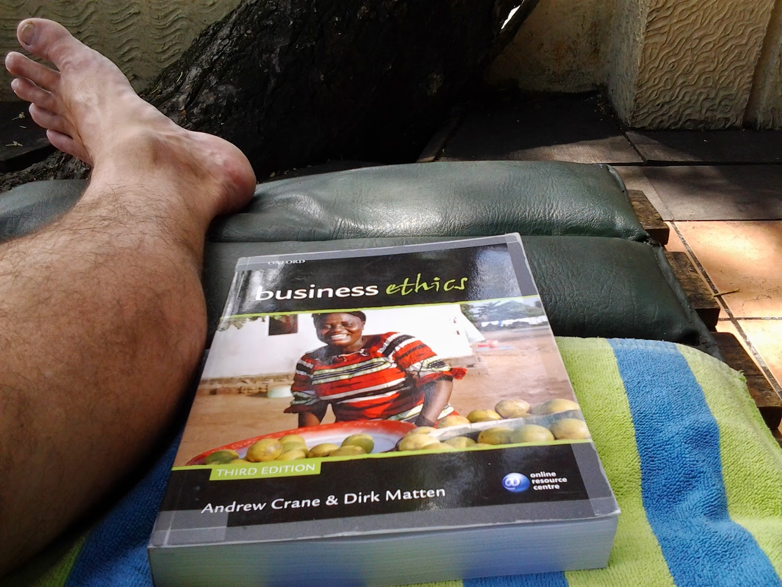 Yet, you have to appreciate the flexibility of online education and its effectiveness can\’t be denied. Sure, I still have to sit through recorded video lectures, links to short YouTube videos, read academic presentation notes, Adobe Connect sessions and of course the textbook. The global nature of business ethics is reflected in the textbook, Business Ethics: Managing Corporate Citizenship and Sustainability in the Age of Globalization from Oxford University Press.