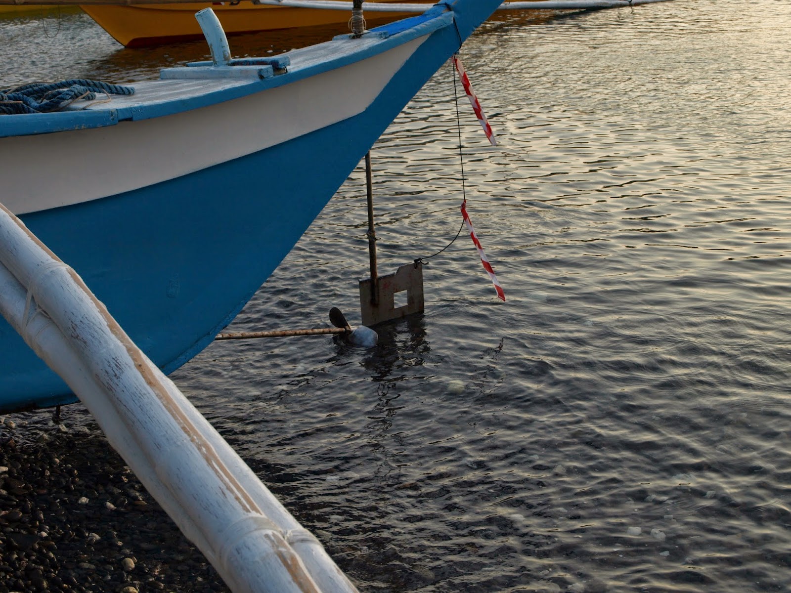 Bancas are built for their environment; the small propeller and shaft is mounted almost perpendicular to the keel, the small rudder makes steering difficult, these boats can navigate extremely shallow water, an essential trait in these high tidal areas.
