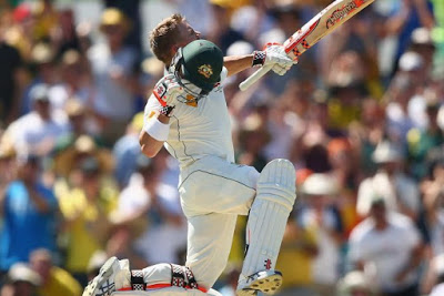 After the new ball was taken after the mandatory 80 overs, both David Warner and Usman Khawaja were set and seeing the ball well with a century and a double century already on the scoreboard. Trent Bould is handed the new ball with Khawaja taking a single giving the strike to Warner, showing no respect for the new ball drives the ball to the boundary, takes two runs on the third ball and smashes the ball straight back past the bowler and into the fence.