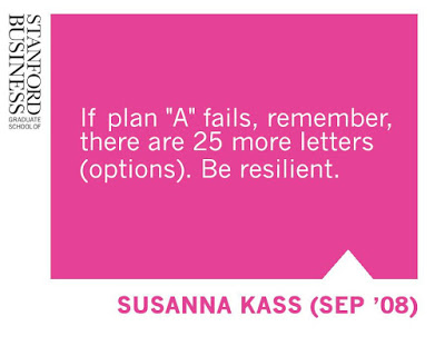 Interestingly, contradicting Susanna Kass at Stanford’s Graduate School of Business is Elizabeth Holmes CEO of Theranos, the privately held health technology and medical laboratory company suggesting “The minute you have a back-up plan, you’re admitted you’re not going to succeed.”