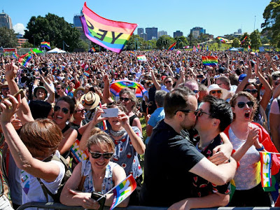 The people of Australia have returned their survey questionnaires, it wasn’t a vote apparently hence the Bureau of Statistics managing the process but it offered a pretty good indication of what people wanted. The survey asked a simple question leaving either a yes or no box to tick and a return postage envelope for the response. More than 80% of survey forms were returned offering a definitive answer – the yes vote wins. So we are going to have same sex marriage legislated in Australia probably before Christmas.
