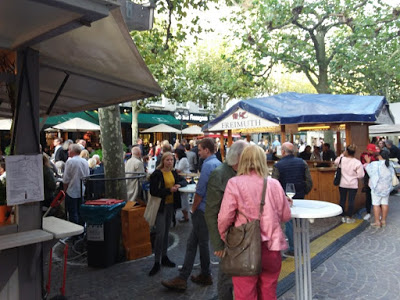 It was a cool Friday evening, glancing at my watch, it had just turned 7:30 and the crowd was in a wonderful mood. The first thing I noticed was everyone was standing around sipping Rhine Riesling on this beautiful autumn evening. In the plaza, pop-up bars abounded, a plethora of options were available, there was no shortage of choices, the real issue was to find a clear spot to stand. As I wandered up to the one of many bars, I was astounded at the choices of Riesling on offer.