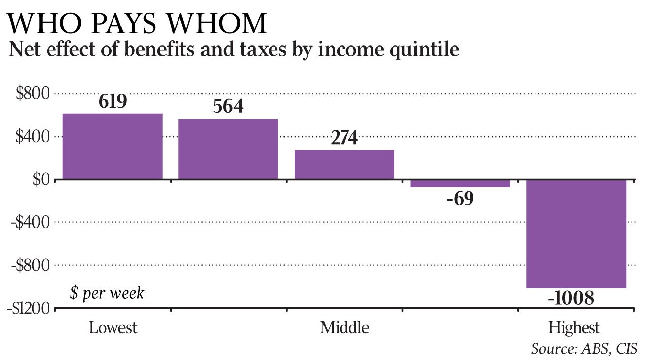 Everyone complains they pay too much tax in Australia, there is also a cry that we are the most taxed nation in the world – that isn’t correct either. The net effects of tax by income tell us that the top 40% of salary earners in Australia pay all the tax to run the nation whilst 60% get given money by the government.
