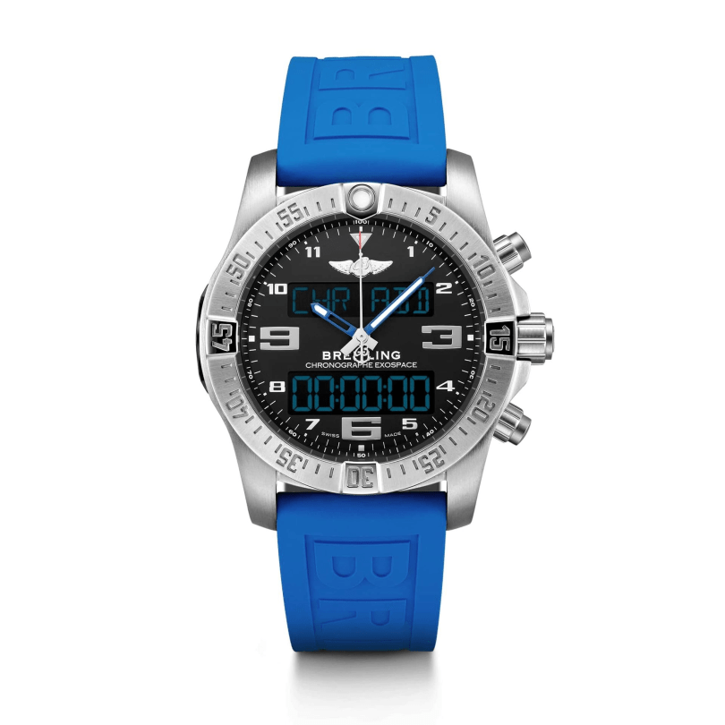 The Breitling Exospace B55 is an interesting take on a smartwatch, this is a quartz watch with three analog hands and a digital readout. So we could consider the Exospace B55 as a hybrid timepiece, a digital/analogue wristwatch.
