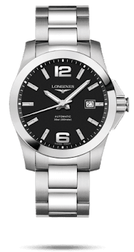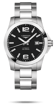 The black lacquered dial is polished with Arabic numerals at the 12 o’clock and 6 o’clock positions and hour markers around the dial with the date window positioned at the 3 o’clock position. The silver polished hands and markers have a luminous coating allowing low light reading of the dial. I really enjoy the chambered bezel adding to the minimalist look of the Conquest, dating back to the original release in 1954, this timepiece isn’t over complicated. A scratch resistant sapphire crystal is treated with multiple layers of anti-reflective coating on the underside.