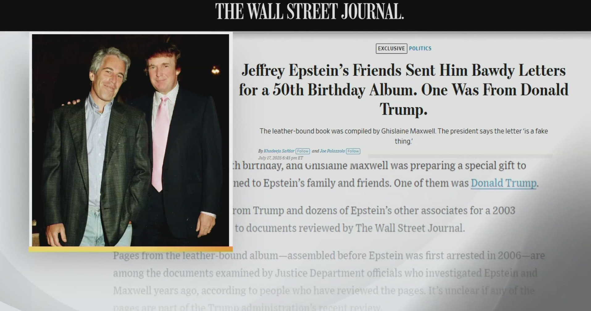 A complainant has to establish that the defendant knowingly published a false statement or acted with reckless disregard for the truth. Trump has been fairly prolific in seeking defamation and has had a number dismissed at early stages. Similarly, Trump has had a couple of successes with Walt Disney’s ABC News agreeing to settle for $15 million [plus costs] along with Paramount Global, owner of CBS agreeing to similar costs for the Kamala Harris 60 Minutes interview. I hope The Wall Street Journal fights this defamation action, Trump is under enormous pressure with his relationship with Jeffrey Epstein and MAGA voters are finally beginning to see through him.
